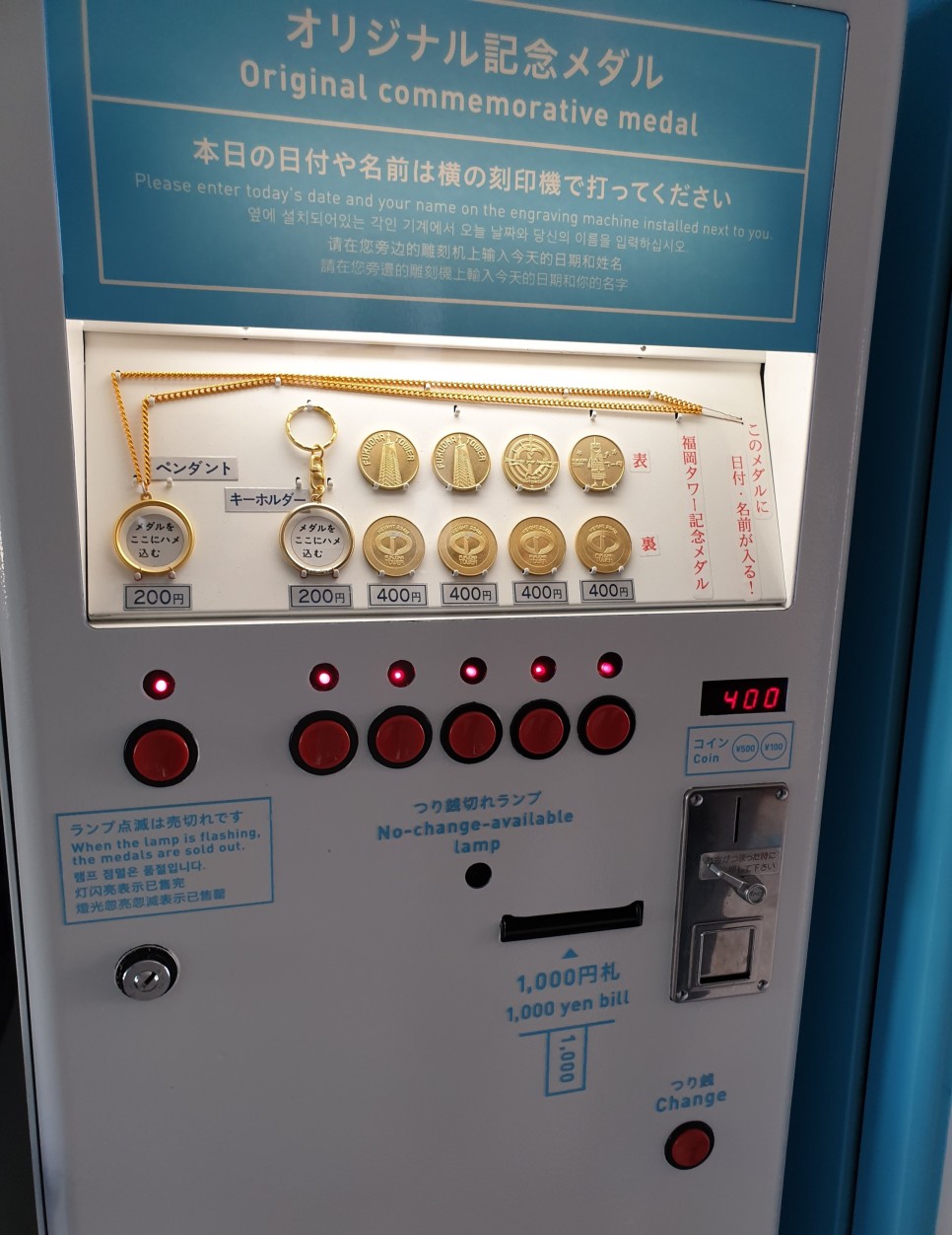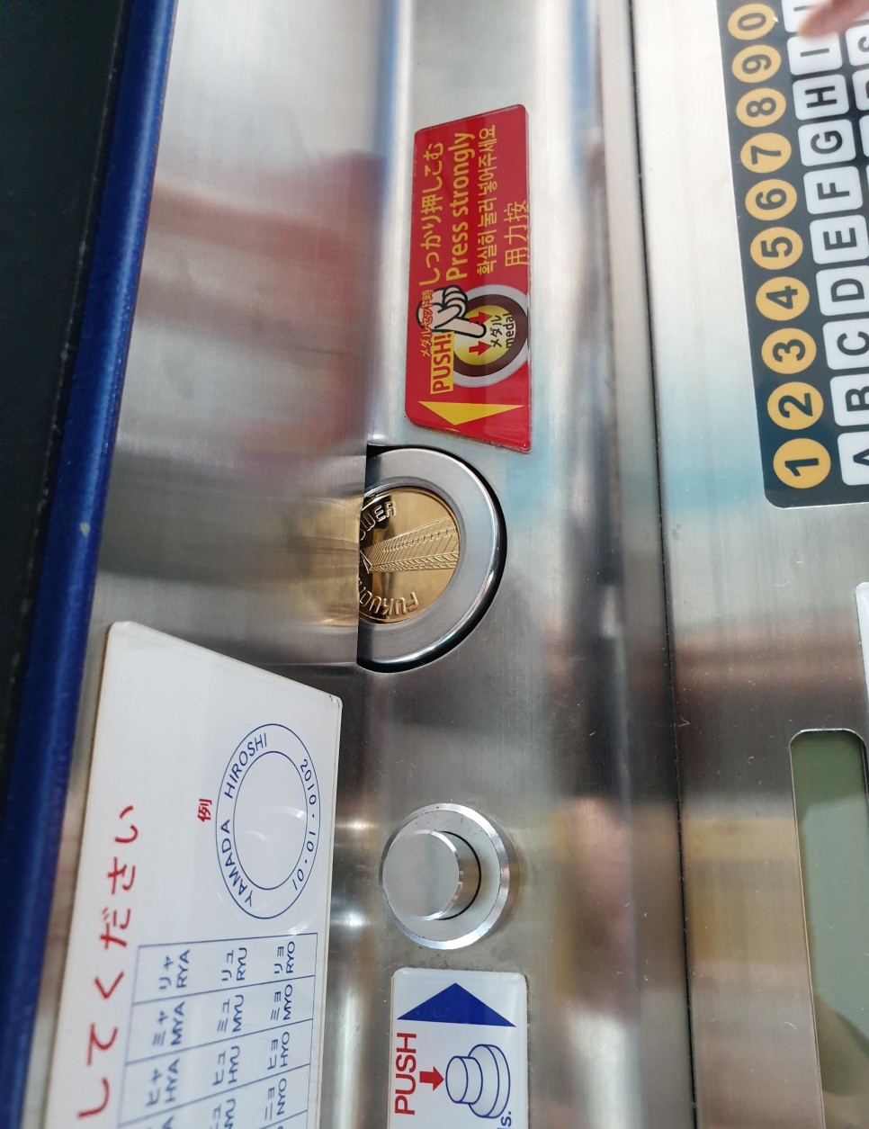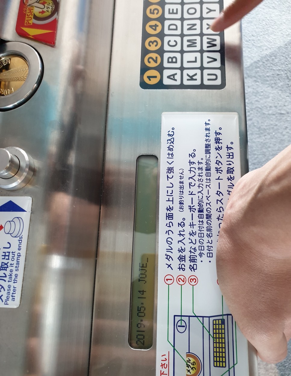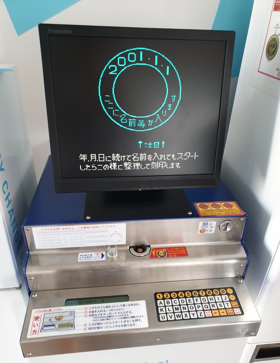주화를 구매한 후, 기계에 넣으면 날짜와 이름을 새겨준다.
