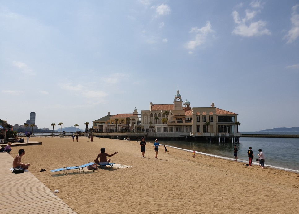 모모치 해변은 인공해변이다.