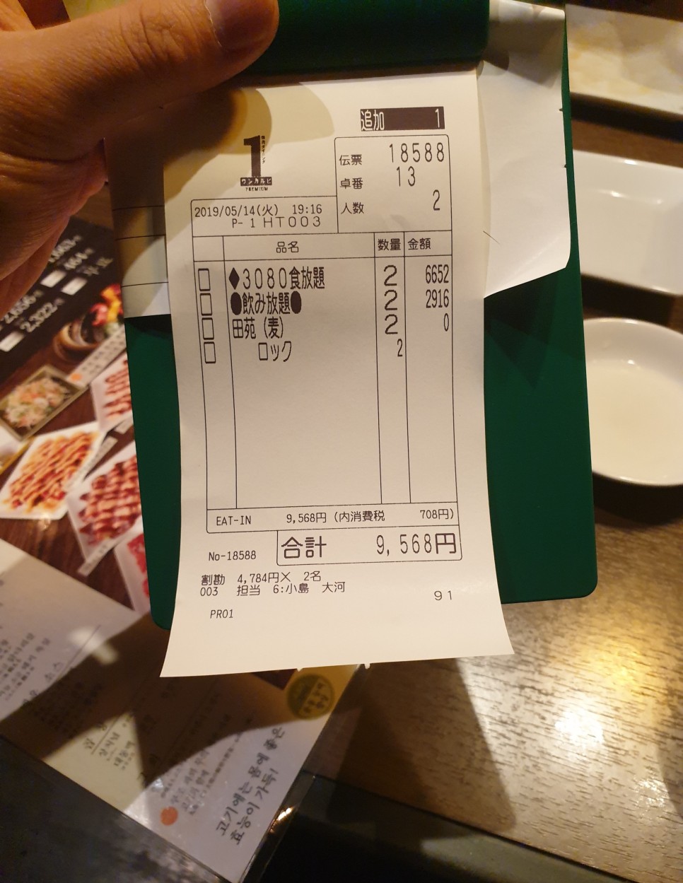 2명이서 총 9568엔 나왔다.