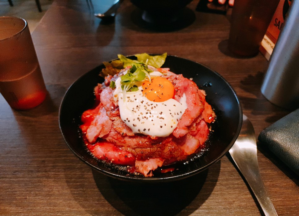 비프 스테이크 덮밥을 먹었다.