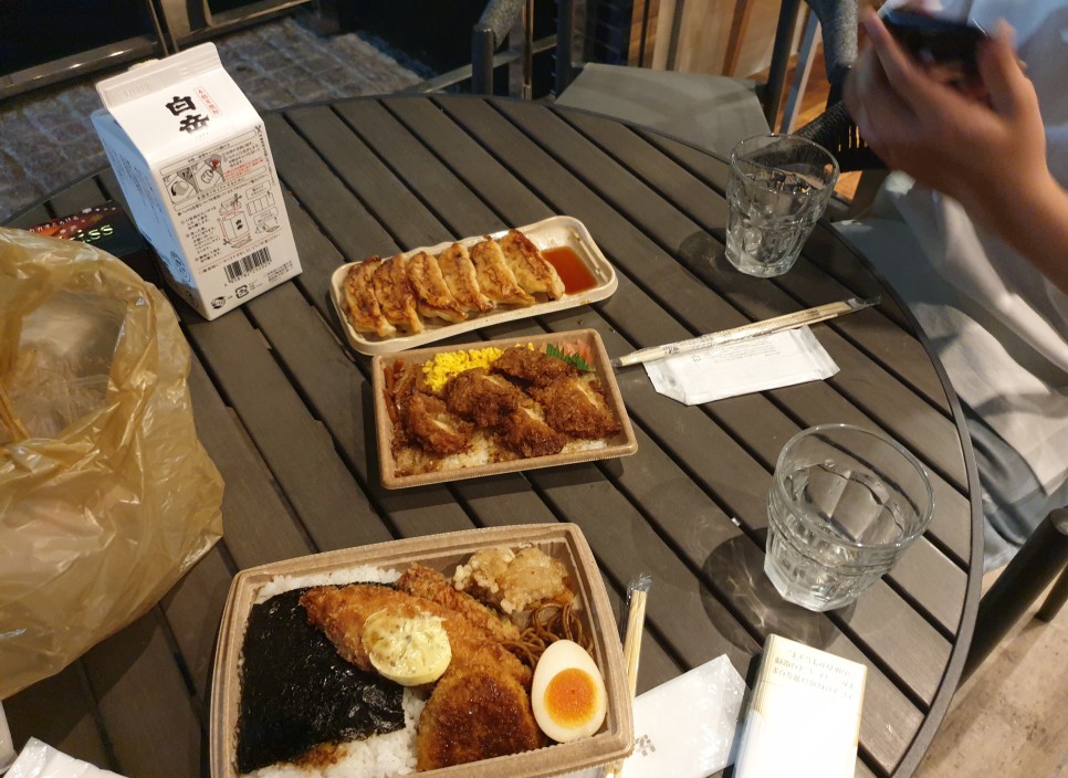 숙소 근처 편의점에서 도시락과 만두를 사와서