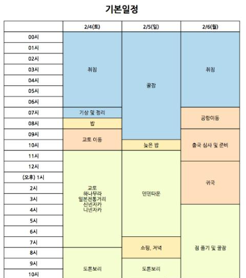 크게 그날 하루 어딜 가거나 뭘 하거나 정도만 정해두는게 좋아요!