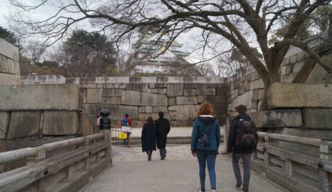 여기서 오사카 성까지 가는 셔틀버스? 같은 걸 탈 수 있어요