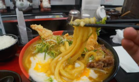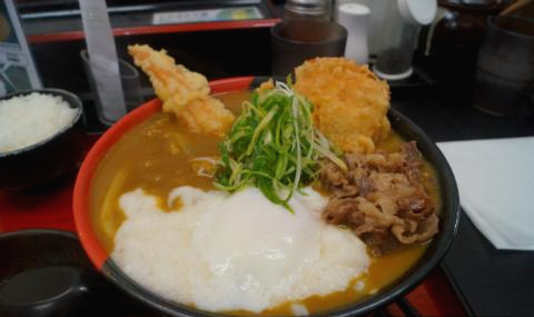 닭 튀김 + 계란 + 카레 + 우동 + 밥 + 차돌박이 + 어묵튀김