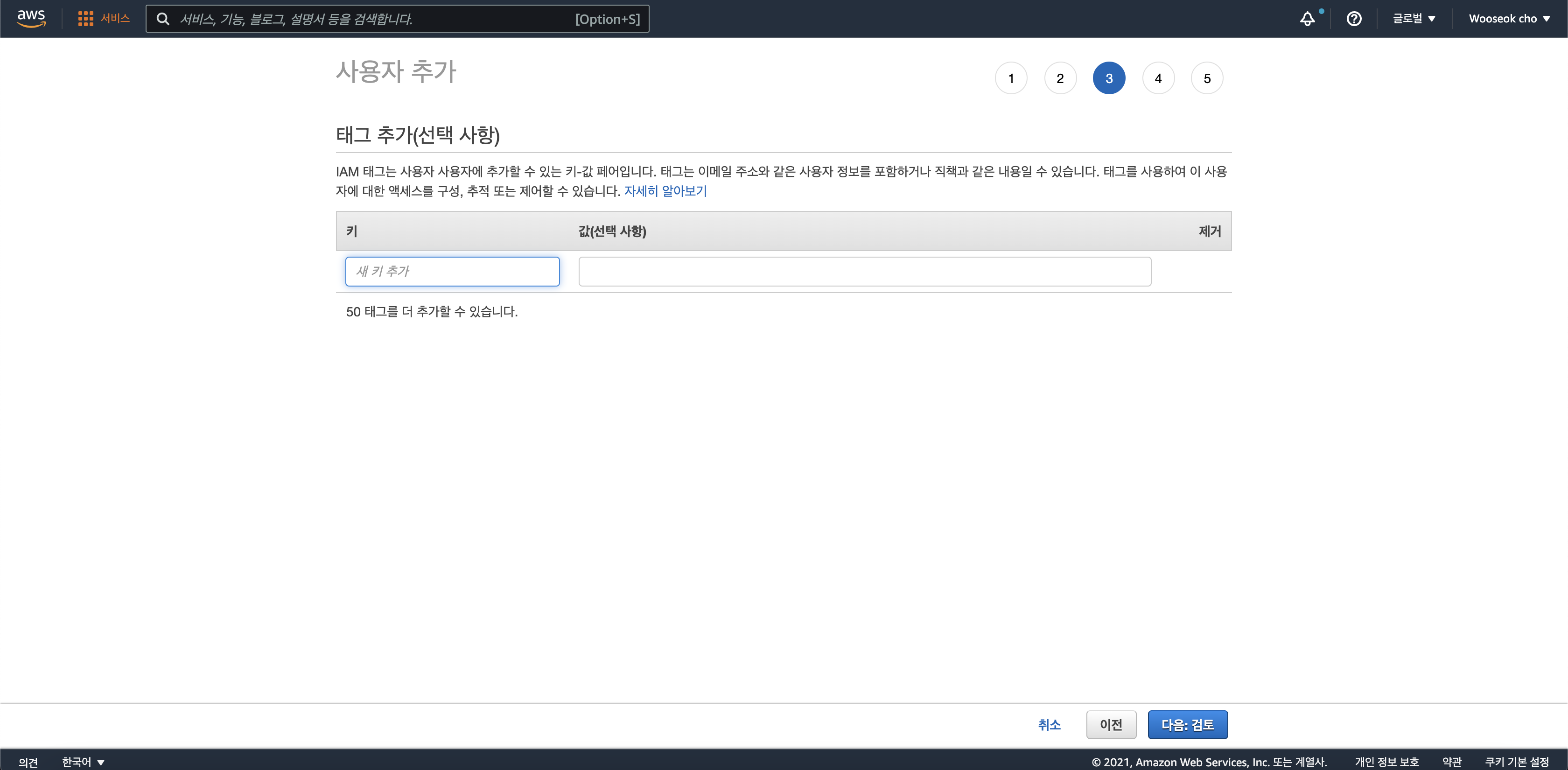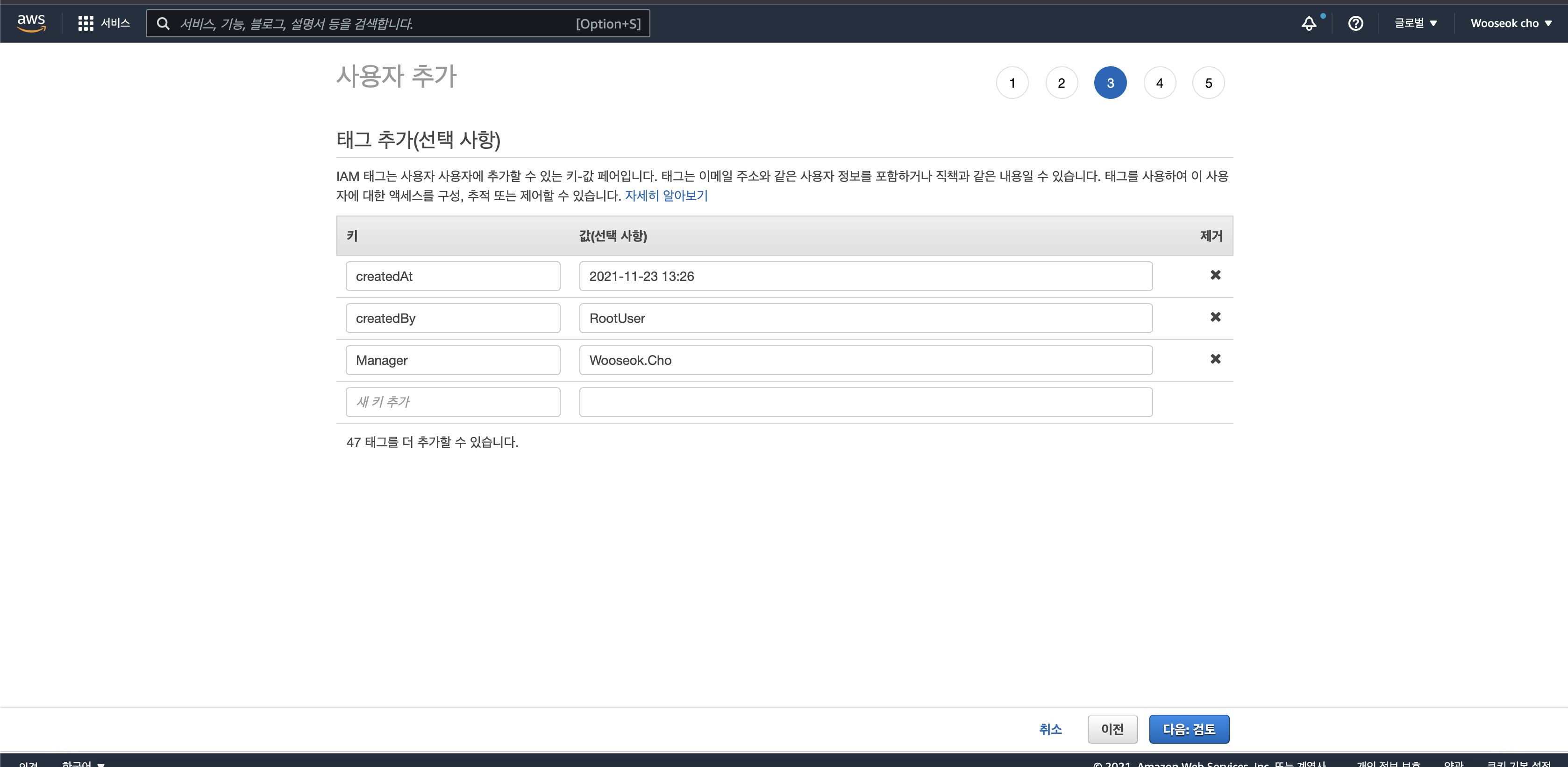 그룹 생성 및 선택 후, [다음:태크]를 클릭하면 태깅을 할 수 있습니다.