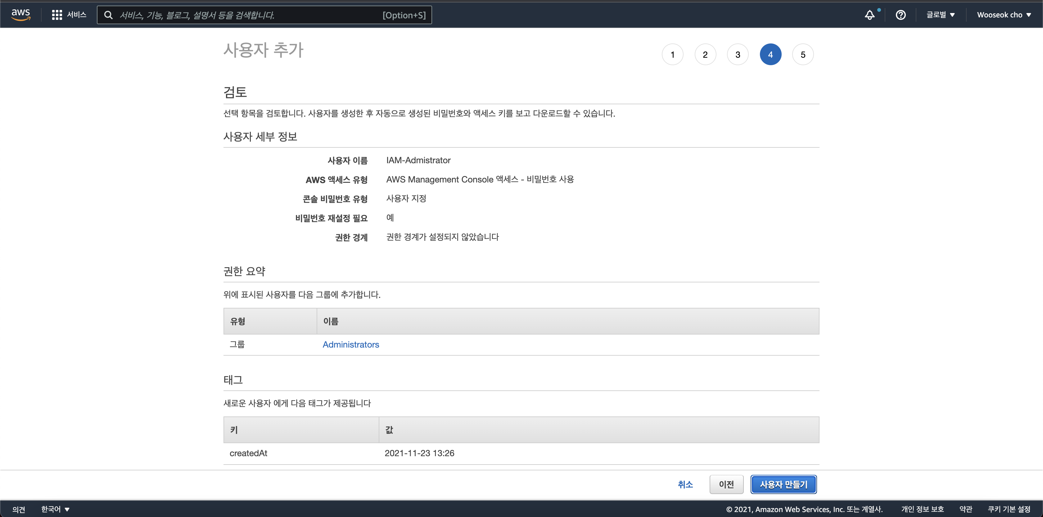 4. IAM 관리 계정 생성