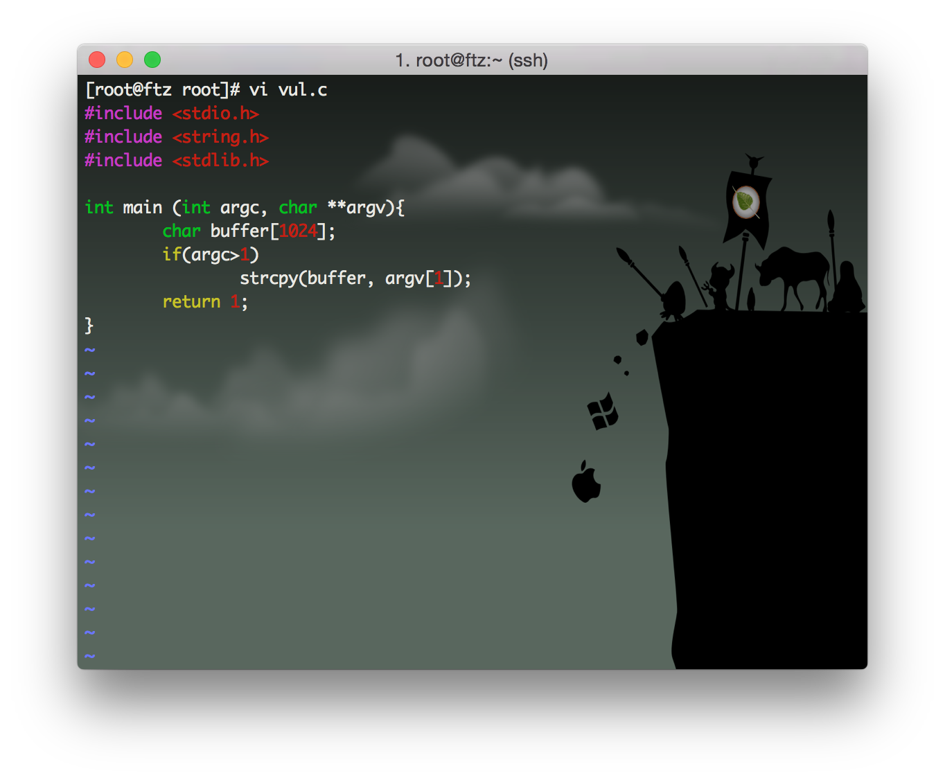 소스코드를 보면 실행 시 주어지는 첫 번째 인자를 buffer라는 char형 배열에 복사한다.