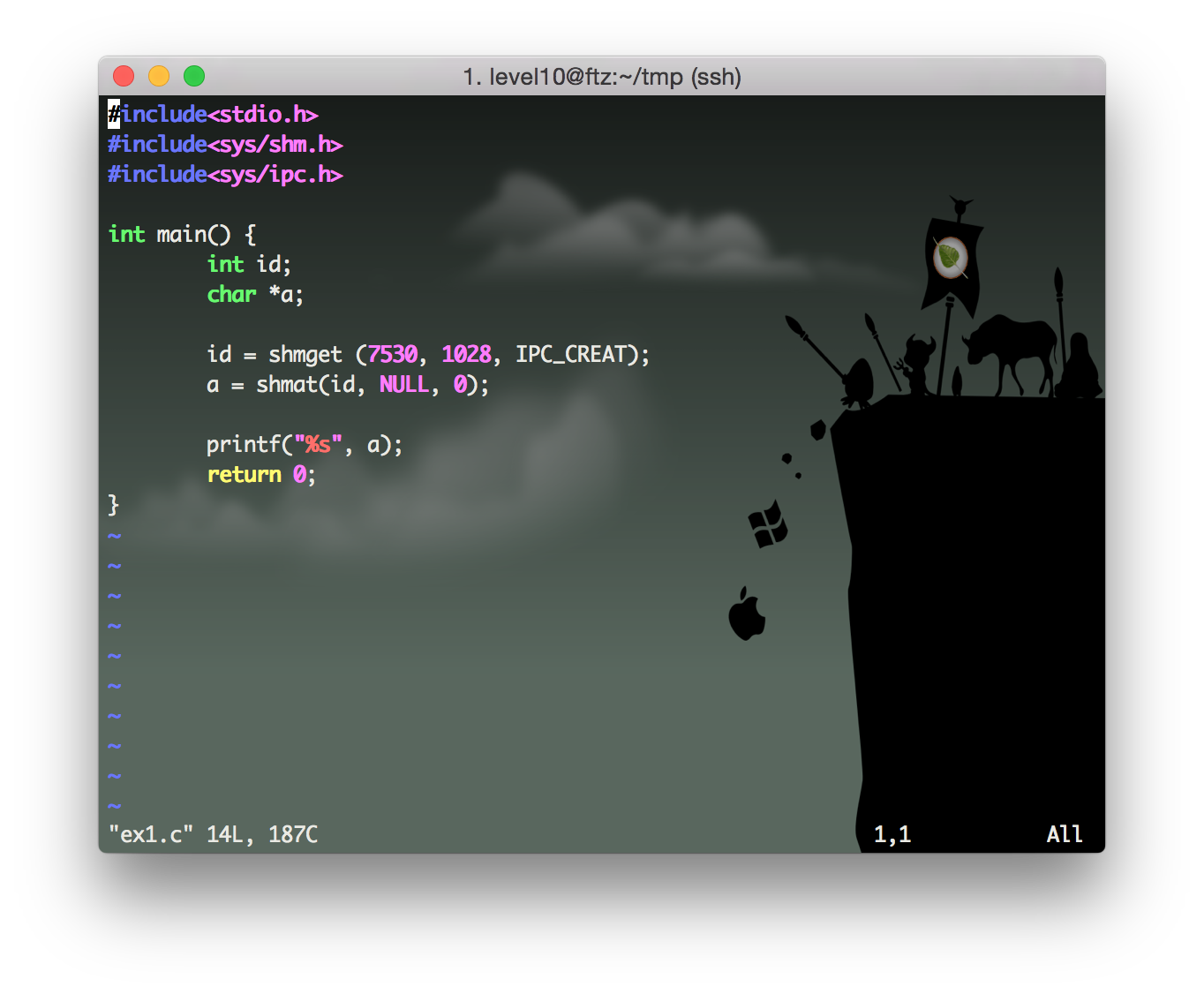 shmat(int shmid, char *shmaddr, int shmflg);