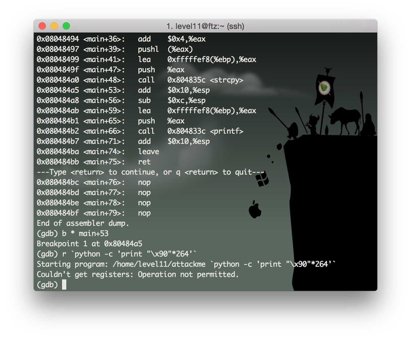 이 프로그램을 gdb로 뜯어보면