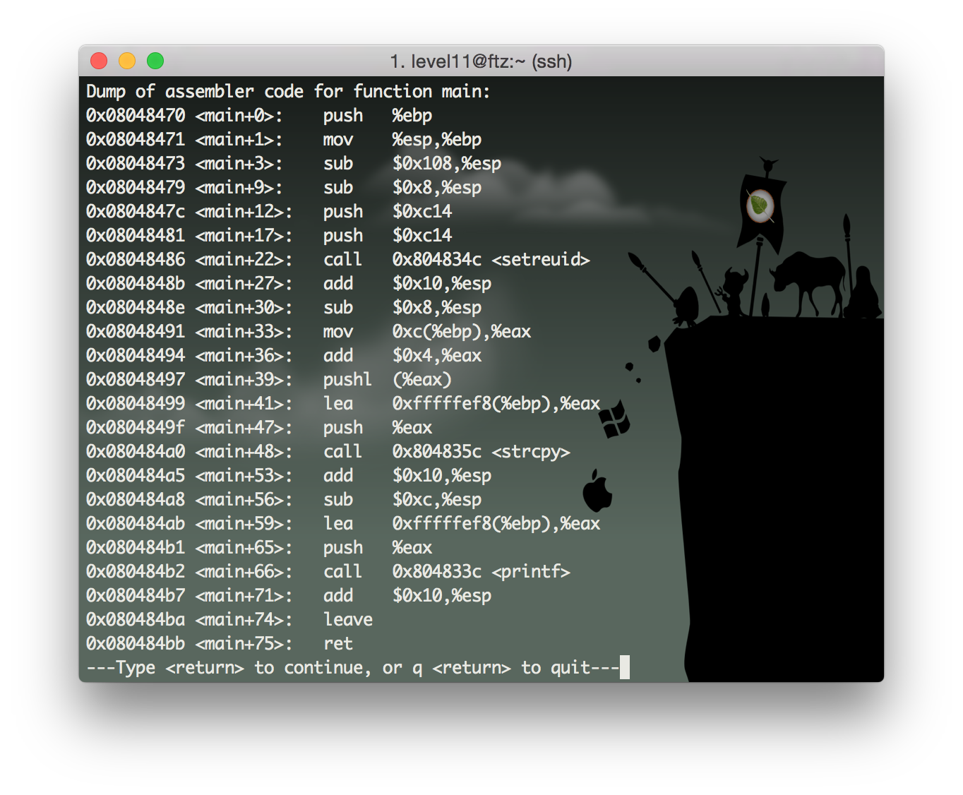 이 프로그램을 gdb로 뜯어보면