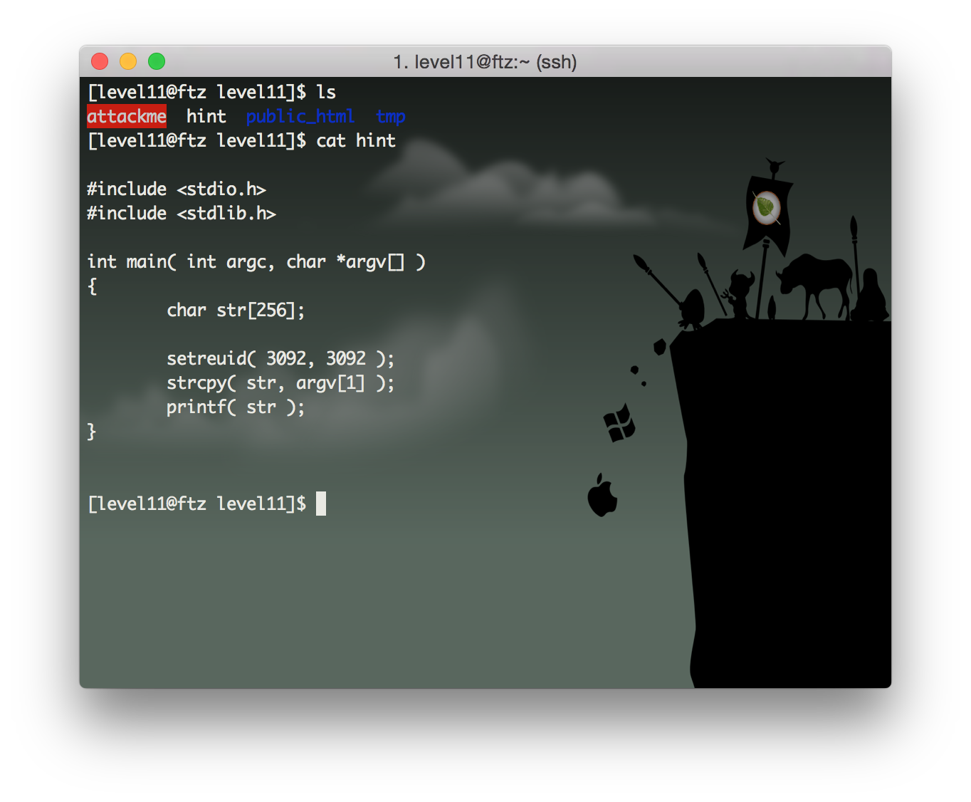 우선 Level11에 접속하여 hint를 보면