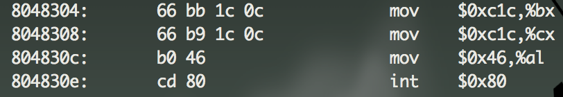 "\x66\xbb\x1c\x0c\x66\xb9\x1c\x0c\xb0\x46\xcd\x80"
