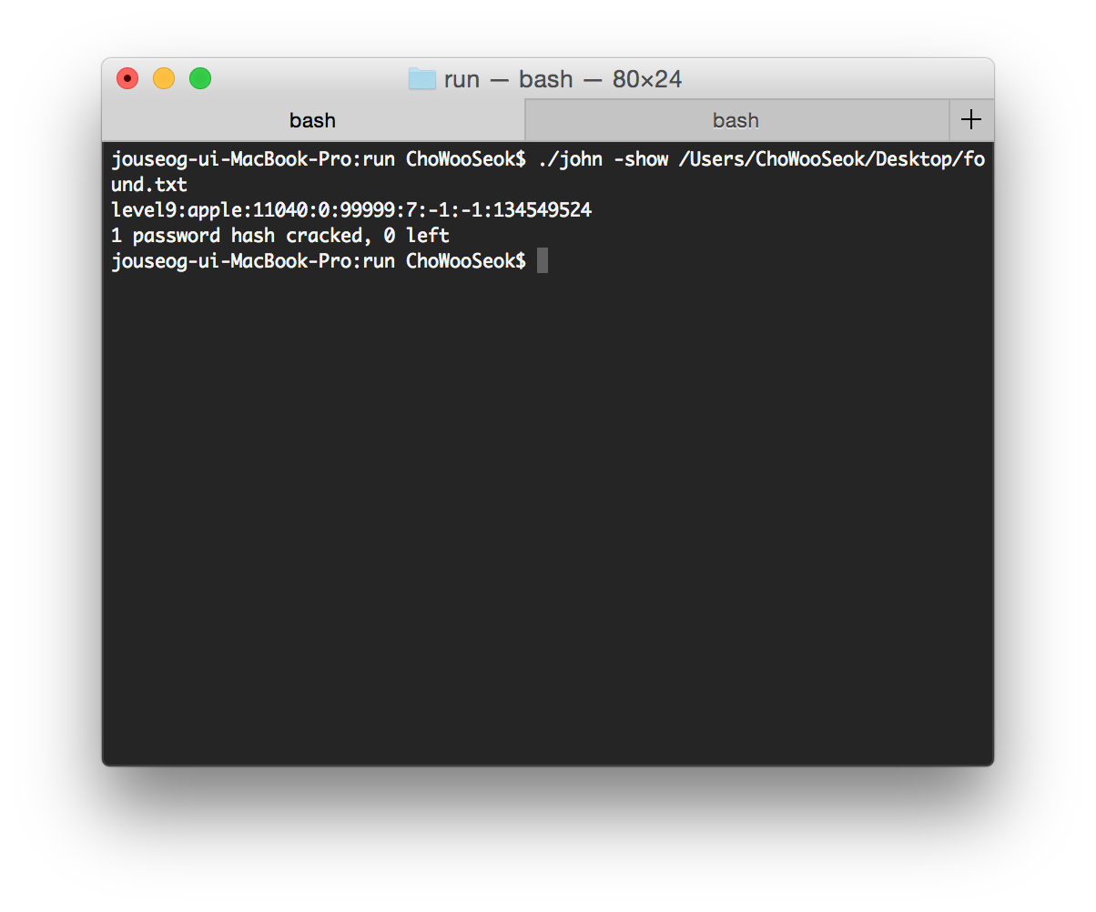 ./john -show /경로/found.txt 해주면 복호화가 됩니다.