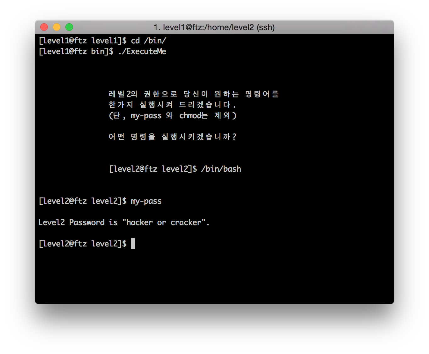 그렇다면 레벨2의 쉘을 실행시켜 줍니다.