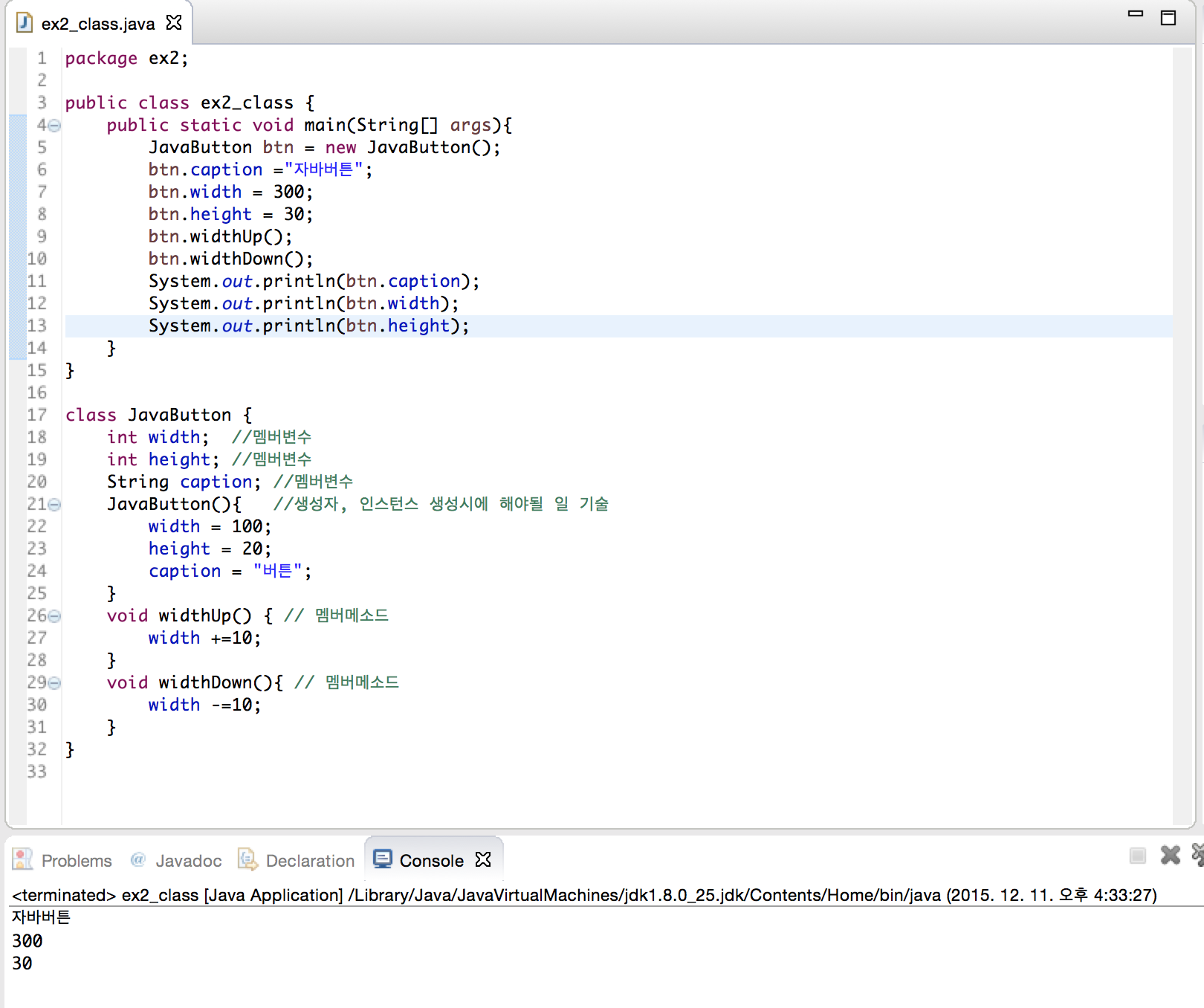 현제 디렉토리에서 ex2라는 디렉토리 생성 후, 아래의 클래스들을 저장한다는 의미이다.