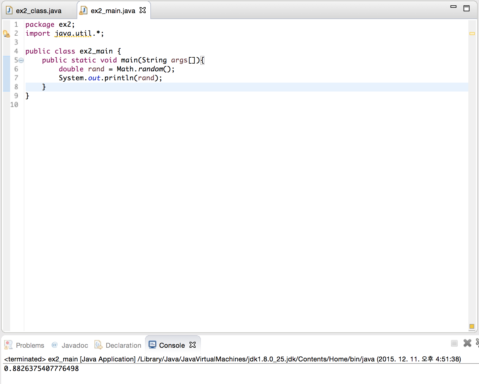그리고 Math 클래스의 정적 메소드인 random()메소드를 이용하여 난수를 rand라는 변수에 저장하여