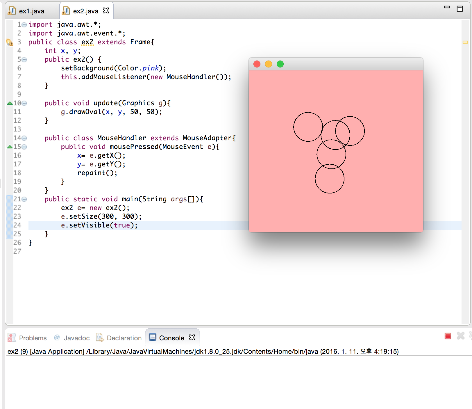 | drawOval(int x, int y, int width, int height) | 타원그리기 |