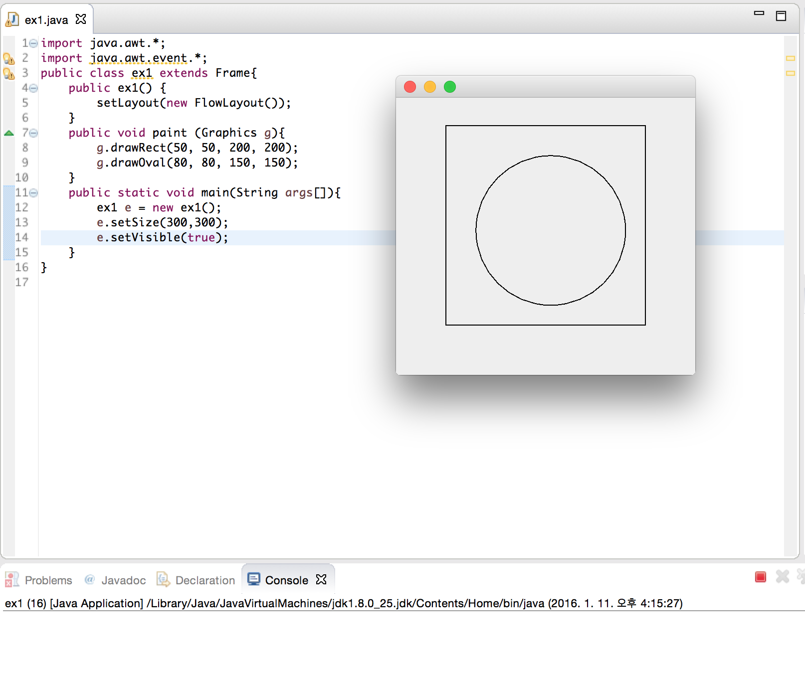 | drawOval(int x, int y, int width, int height) | 타원그리기 |