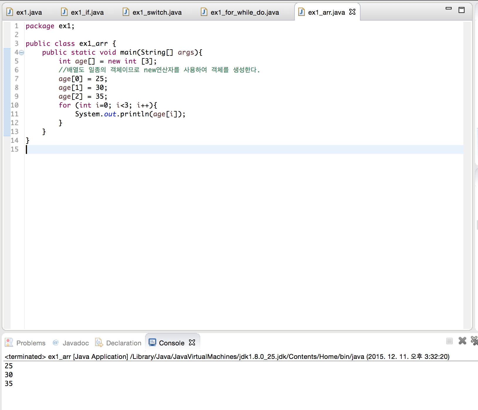데이터의 구별은 데이터의 위치를 나타내는 정수인 인덱스를 이용하며 자바에서의 인덱스는 0부터 시작하며 데이터의 개수가 10일 경우 시작인덱스는 0, 마지막 인덱스는 9이다.