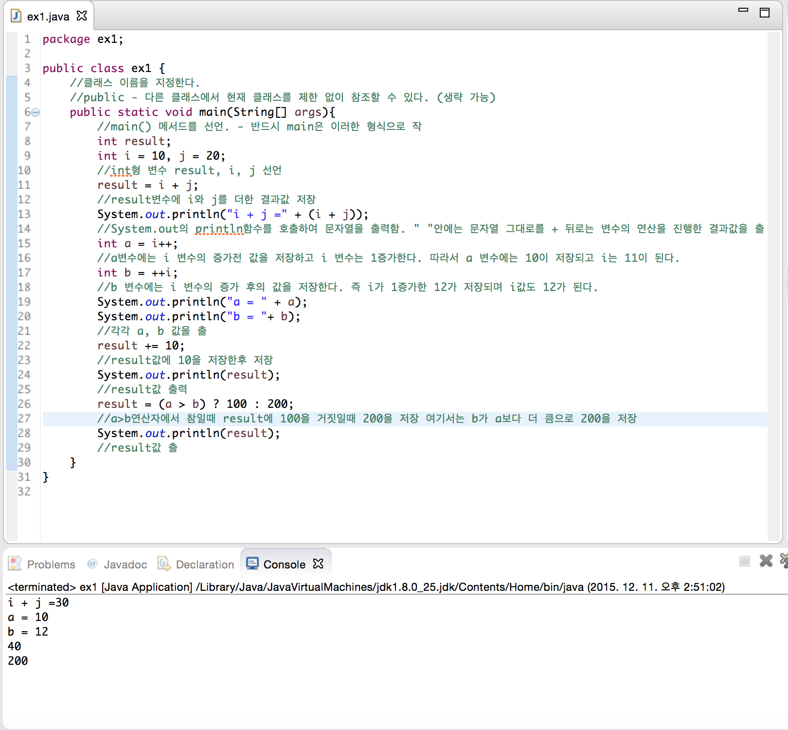 위의 <실습1>에서의 "//"와 같이 //뒤에 오는 문장은 실행이 되지않는다.