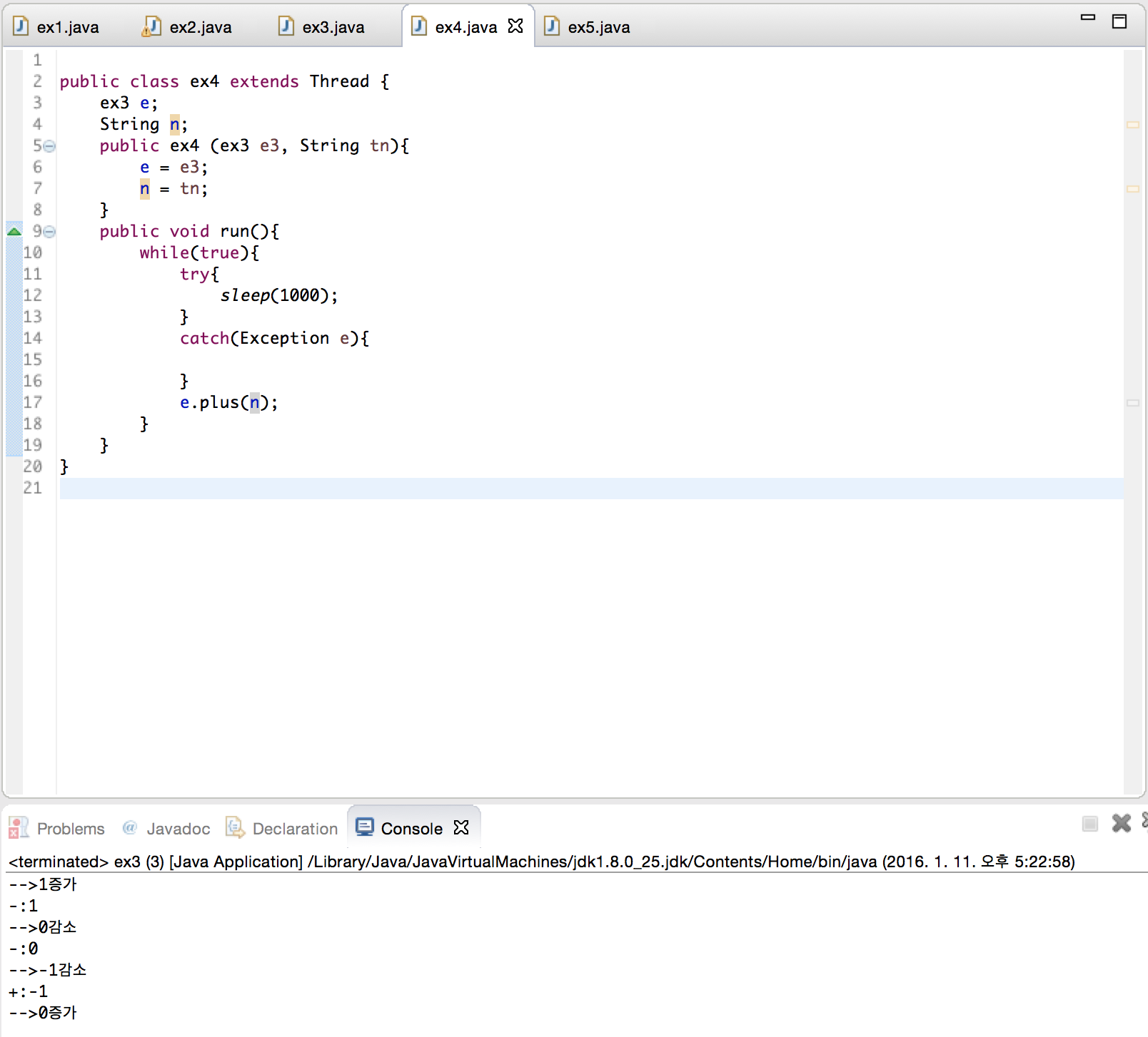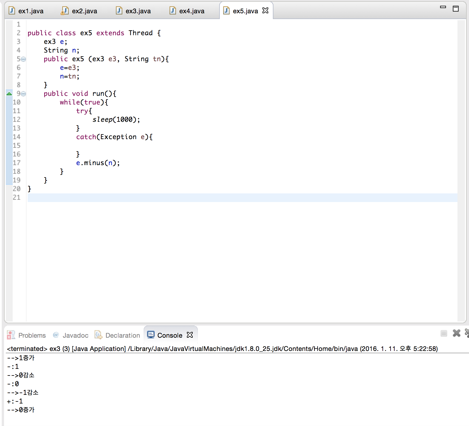 - 스레드 클래스를 상속받아 run() 메소드를 오버라이딩한다.