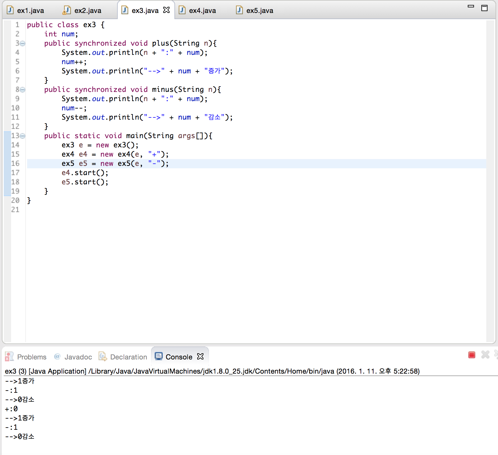 - 동기화 메소드를 구현하기 위해서는 synchronized 키워드를 사용하여야 한다.