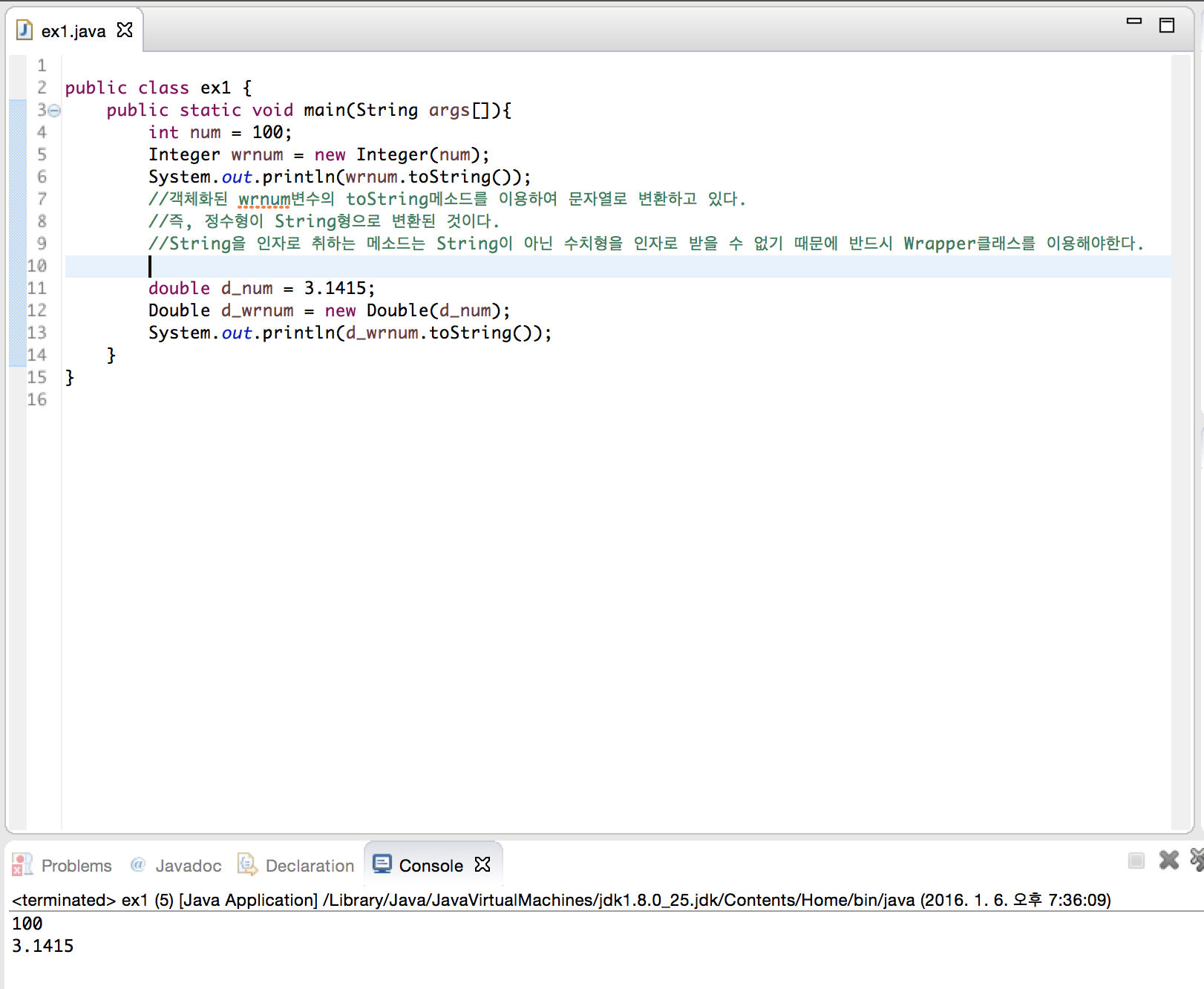 - String toString() 기본데이터를 문자열로 반환한다.