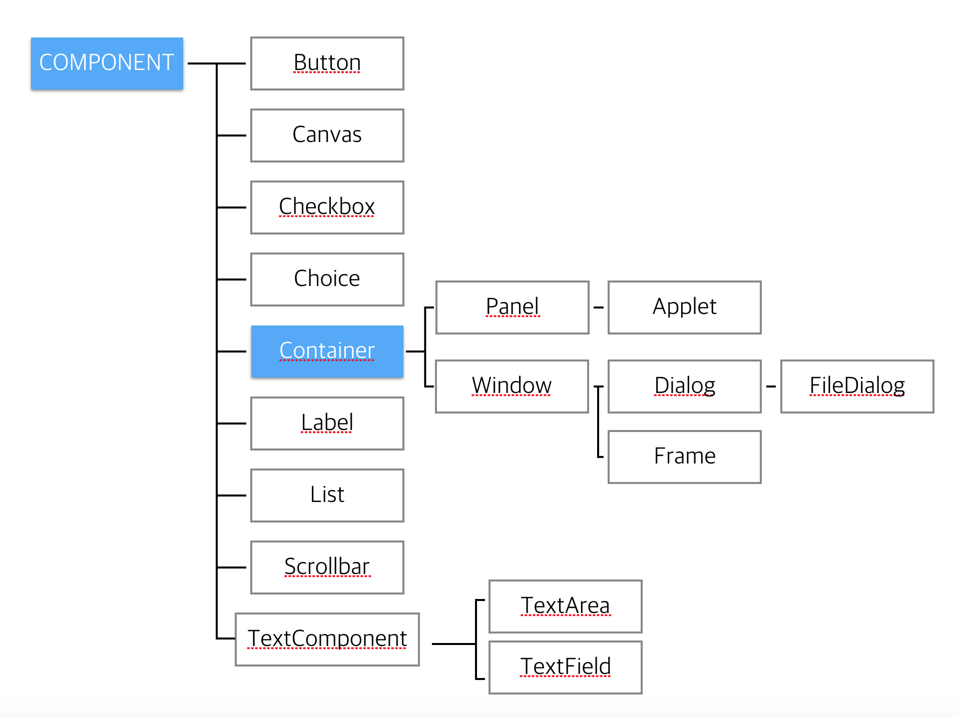 - GUI환경을 구성하는 구성요소의 역활을 담당하는 클래스이다.
