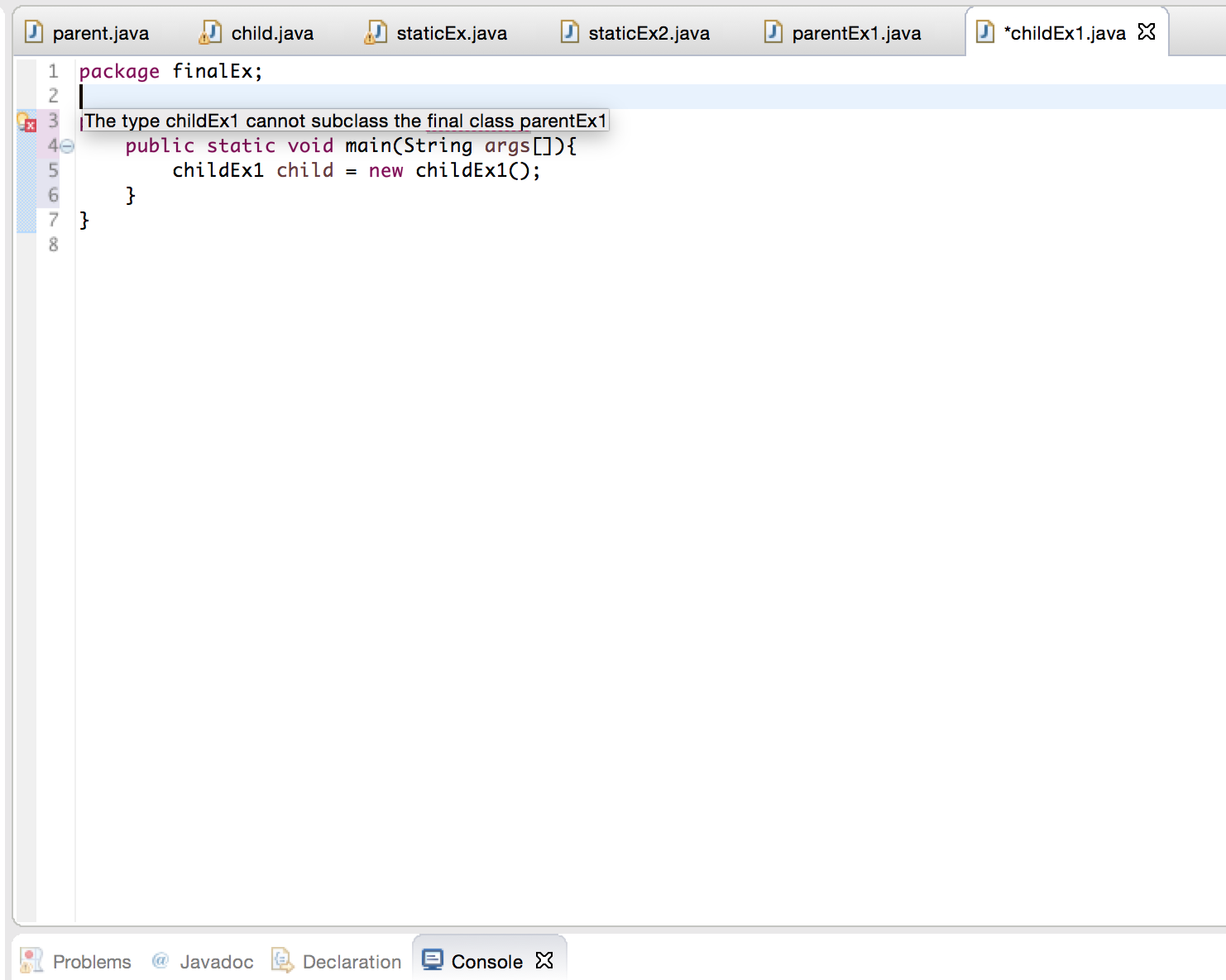 - 부모클래스에 있는 인자 생성자가 정의되었을 경우 디폴트 생성자를 같이 작성하지 않으면 자식클래스를 컴파일할 때 에러가 발생한다.