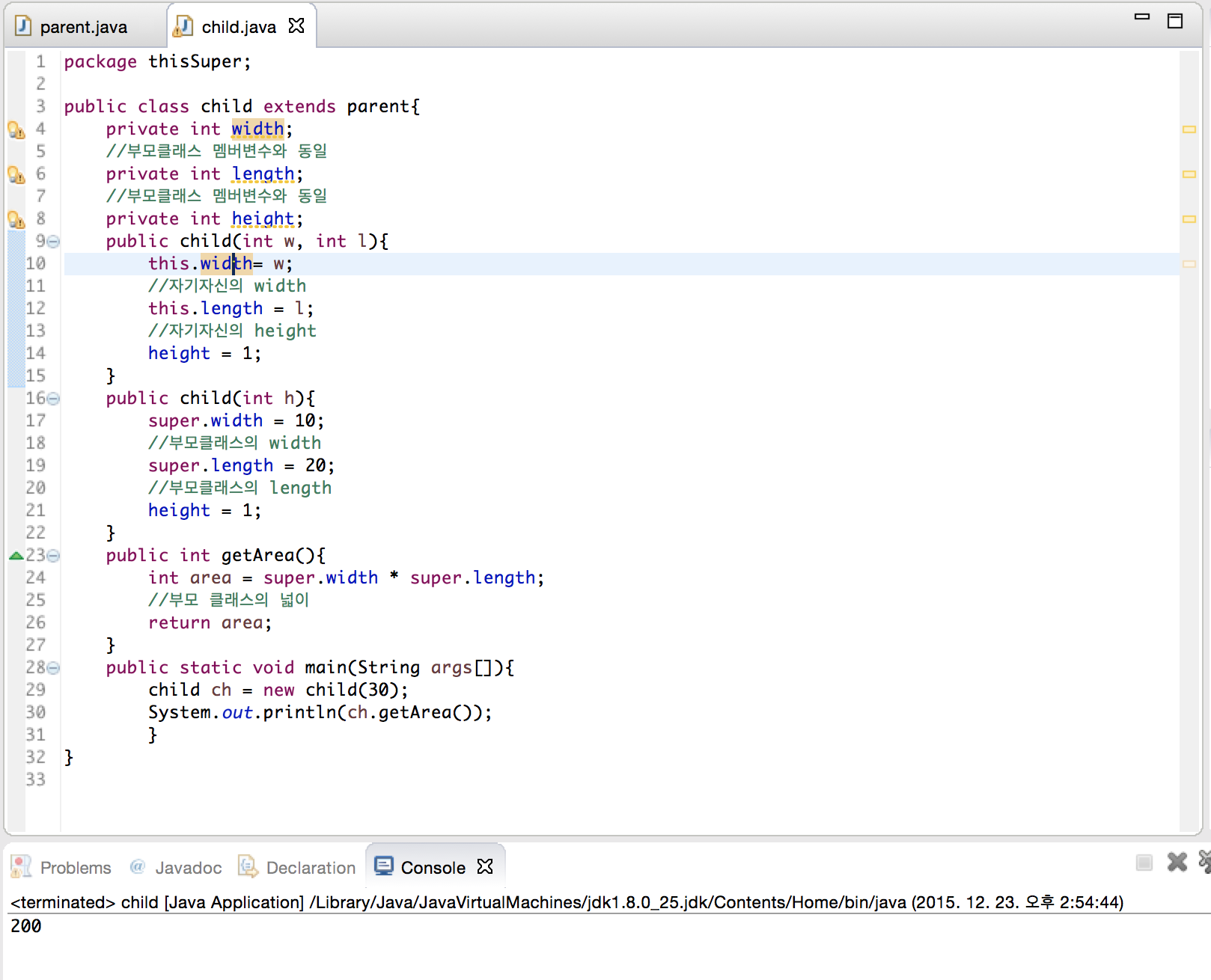 - 부모클래스에서 생성자에 아무것도 정의하지 않았을 경우라도 자식클래스 컴파일시 특별한 문제가 없다.