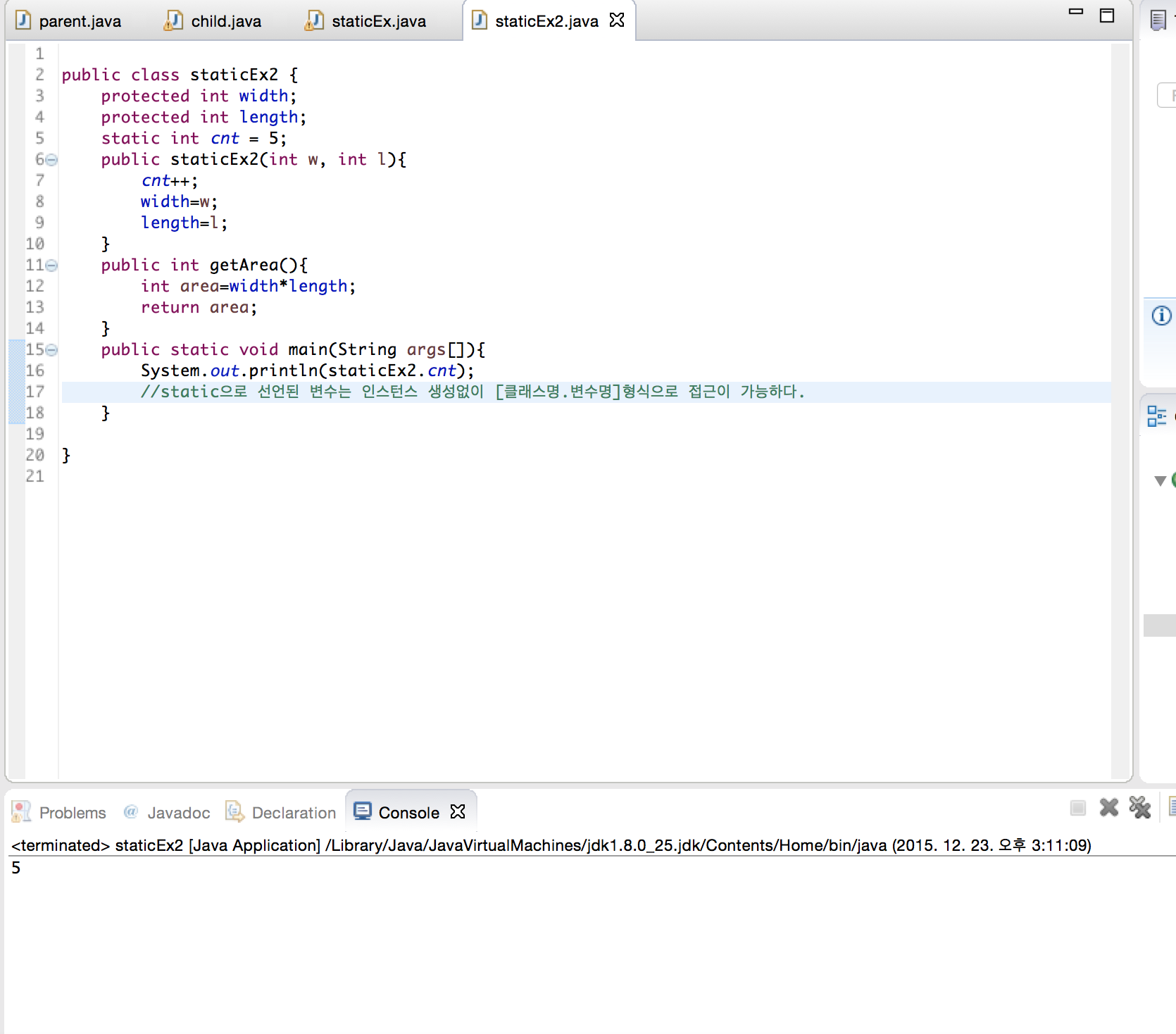 static수정자는 멤버변수 또는 메소드에 대해 사용할 수 있다.