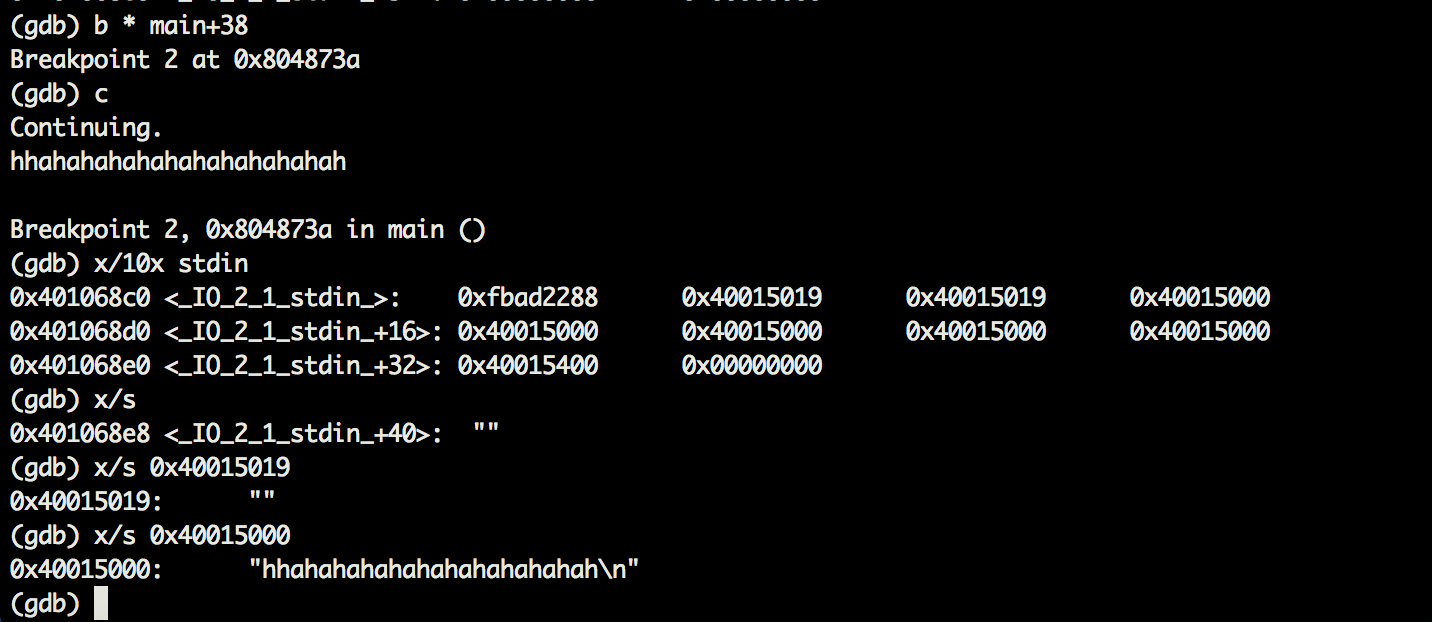 fgets (main+21)에 break 를 걸고