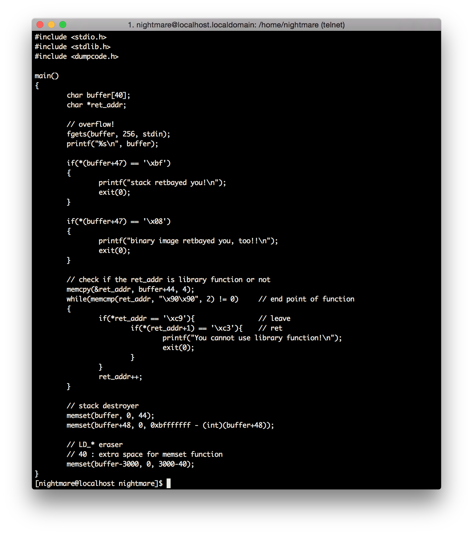 쉘코드를 넣어 버퍼의 크기를 맞추고 ret에 0x40015000을 넣어주면 되겠군요