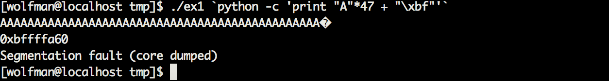 0xbffffbe3 이라는 argv[1]의 주소를 알아낼 수 있습니다.