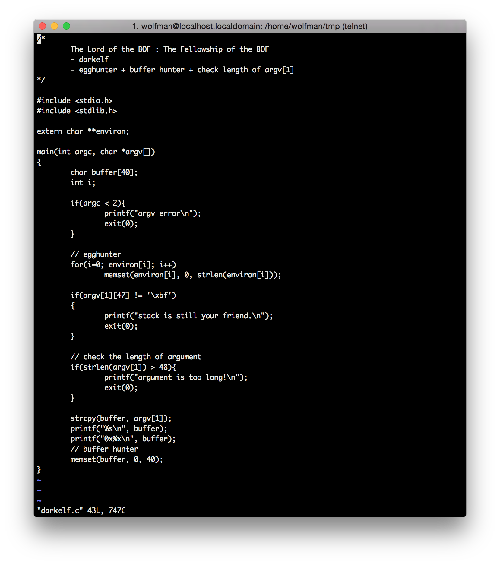 흠.. 에그헌터, 버퍼헌터, 그리고 argv[1]의 길이를 체크하네요