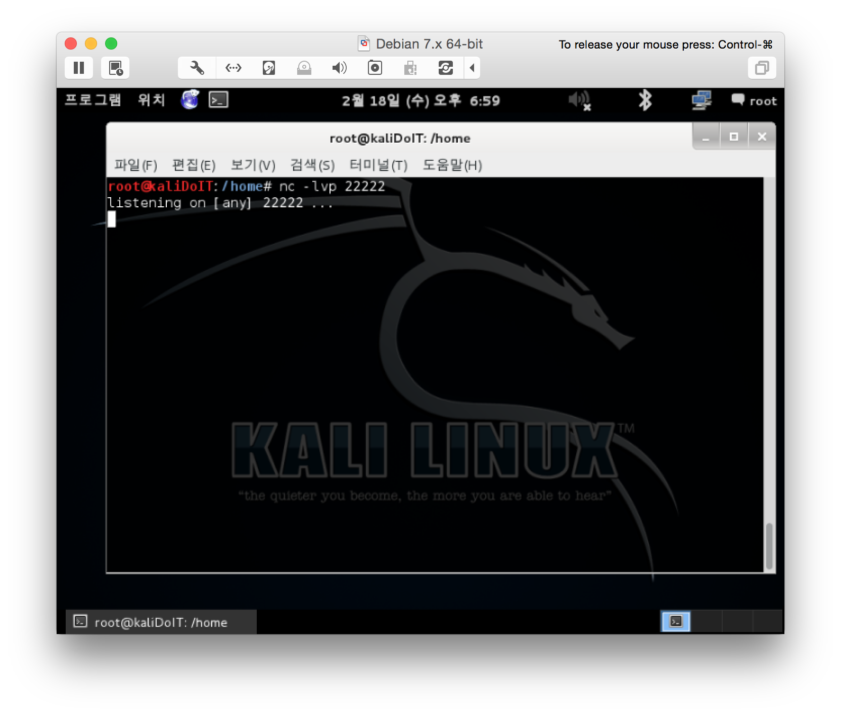 그리고 22222포트를 열어서 기다려줍니다.