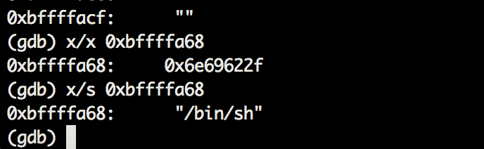 그럼 0xbffffa68로 bin/sh 주소를 입력하면 됩니다.