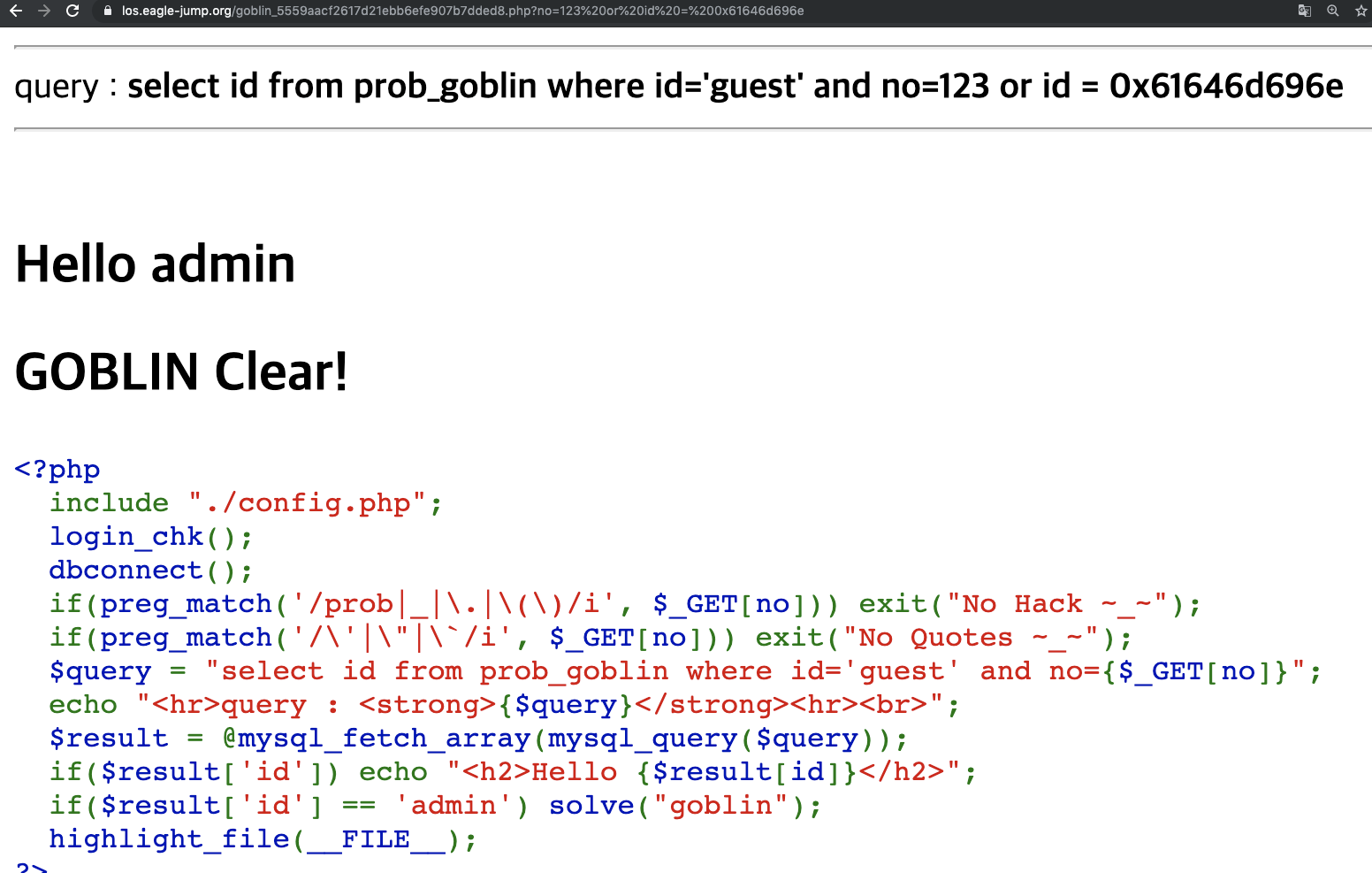 그 후 당연히 로직은 or id='admin' 이라고 생각하지만