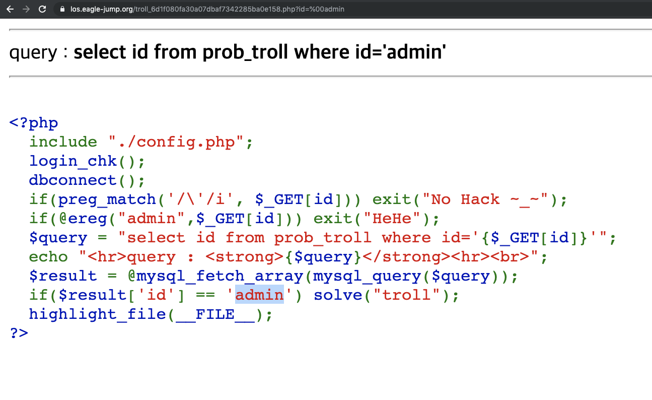 기존에 ereg취약점으로 알고 있었던 %00(null byte)를 붙여주면 우회가 된다.