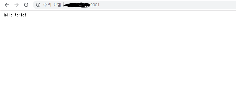 9001 포트로 접속 하였을때, Hello World!가 나온다.