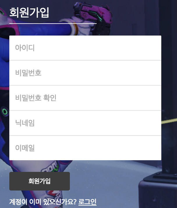 이제 입력값들을 넣고 회원가입을 클릭하면