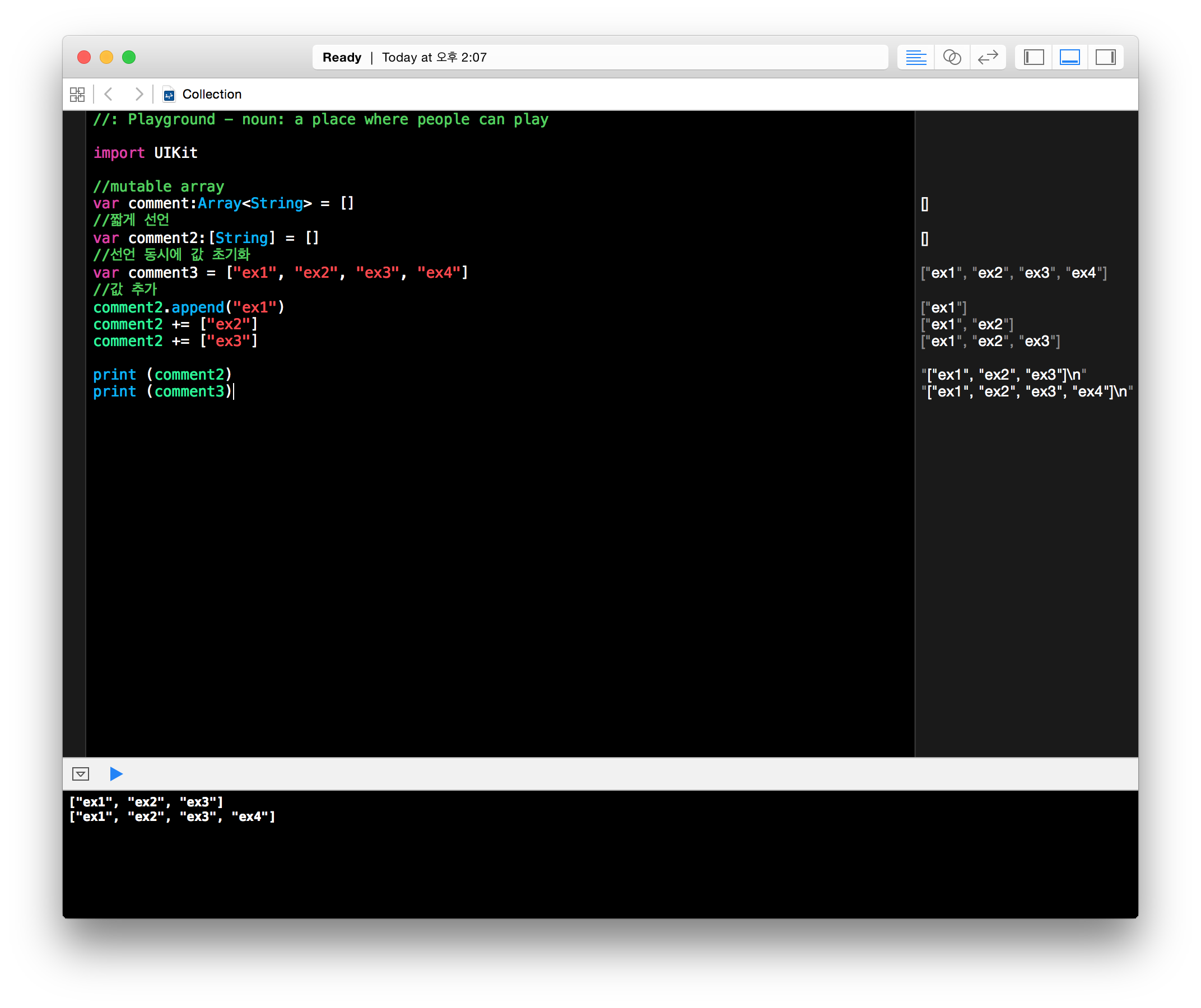 여기까지가 mutable 배열 이었습니다.