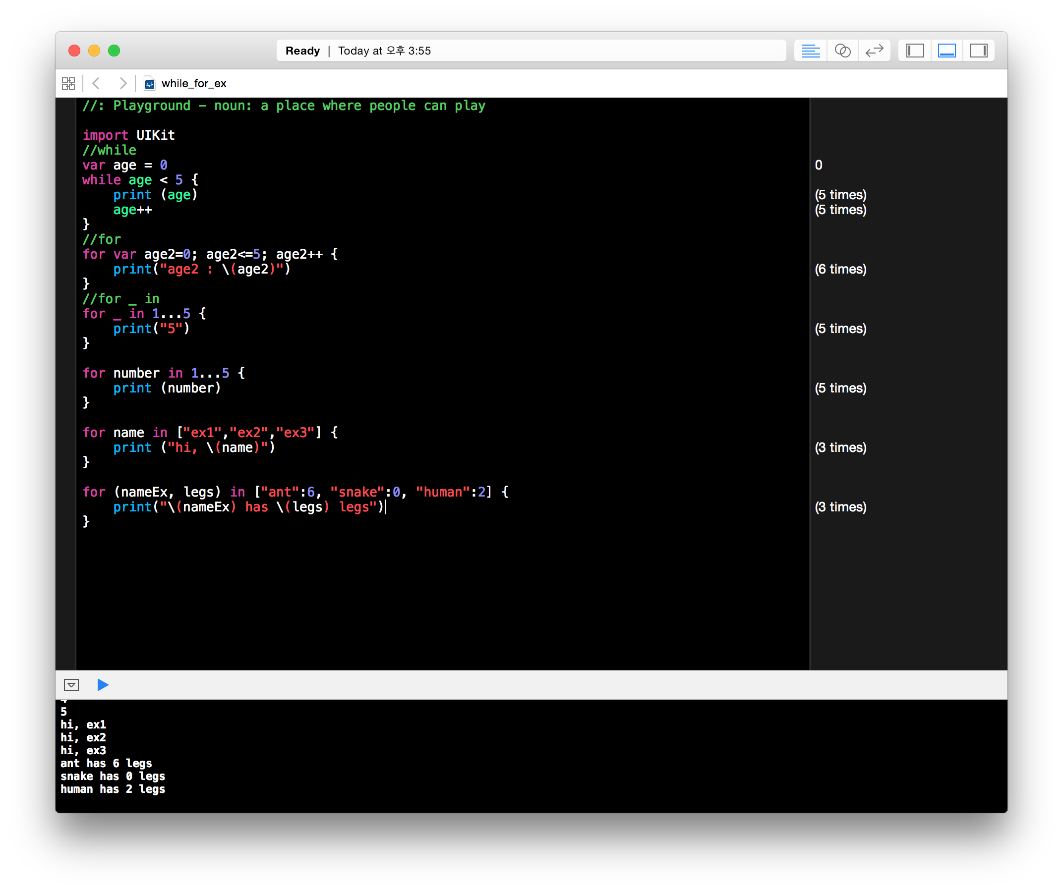 문서를 보면 repeat-while문도 있는데 필요할때 다시 살펴보면 될 듯 합니다.
