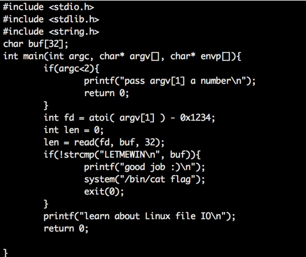 fd는 atoi( argv[1])-0x1234로 정의 되는데, atoi는 10진수 정수 문자열을 정수로 리턴한다.
