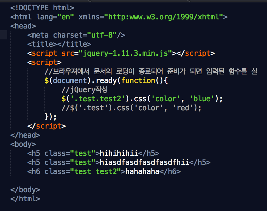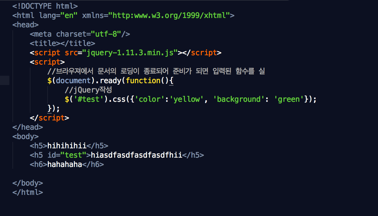 동일한 폴더에 jQuery파일과 html문서가 위치하게 한후 <script> 태그의 src 속성을 이용하여 프로그램을 작성한다.
